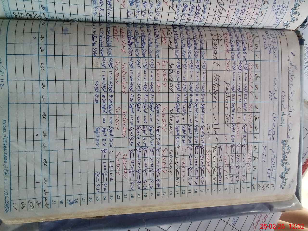 | CNIC | Full Name | Designation | R/C | Absence During Last Calender Month |