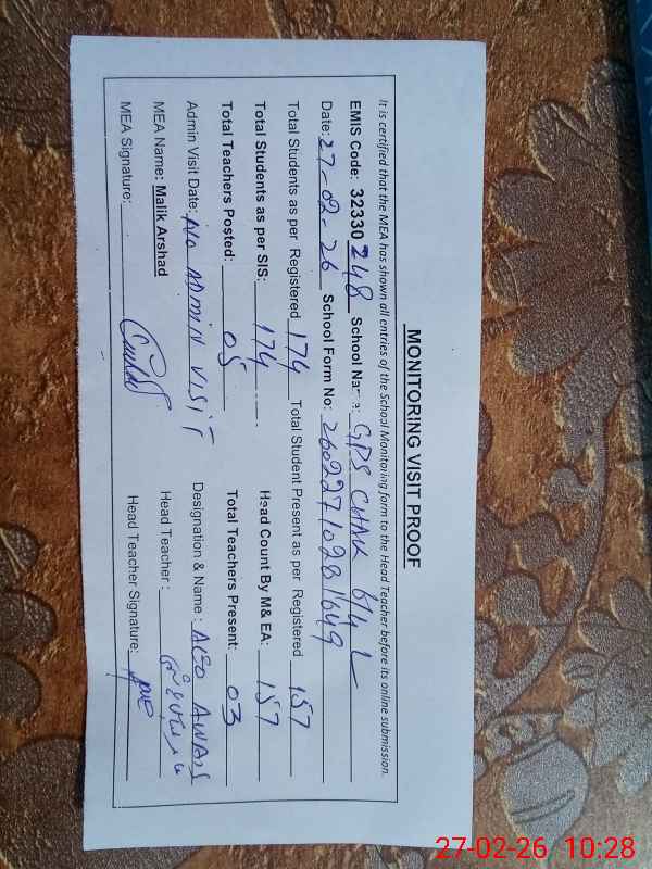 | EMIS Code: 32330248 | Name of School: GPS CHAK NO. 6/4 L | |||