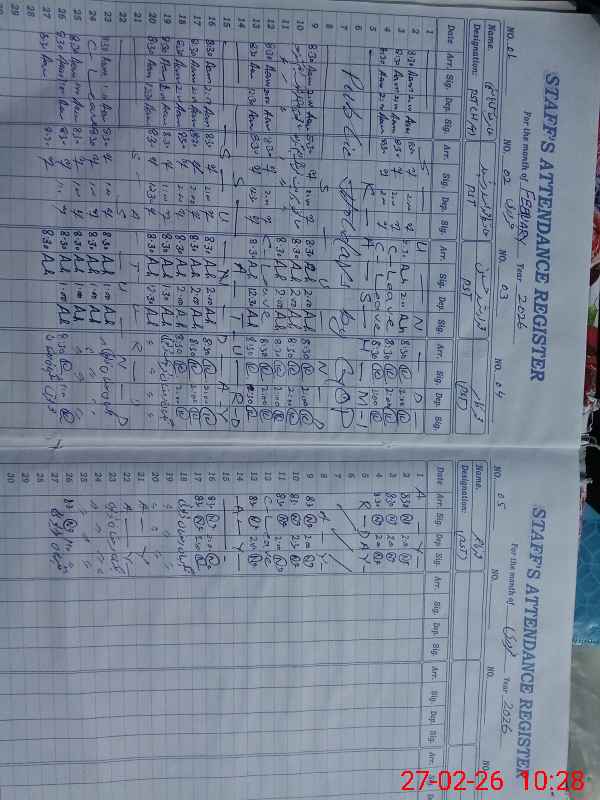 | CNIC | Full Name | Designation | R/C | Absence During Last Calender Month |
