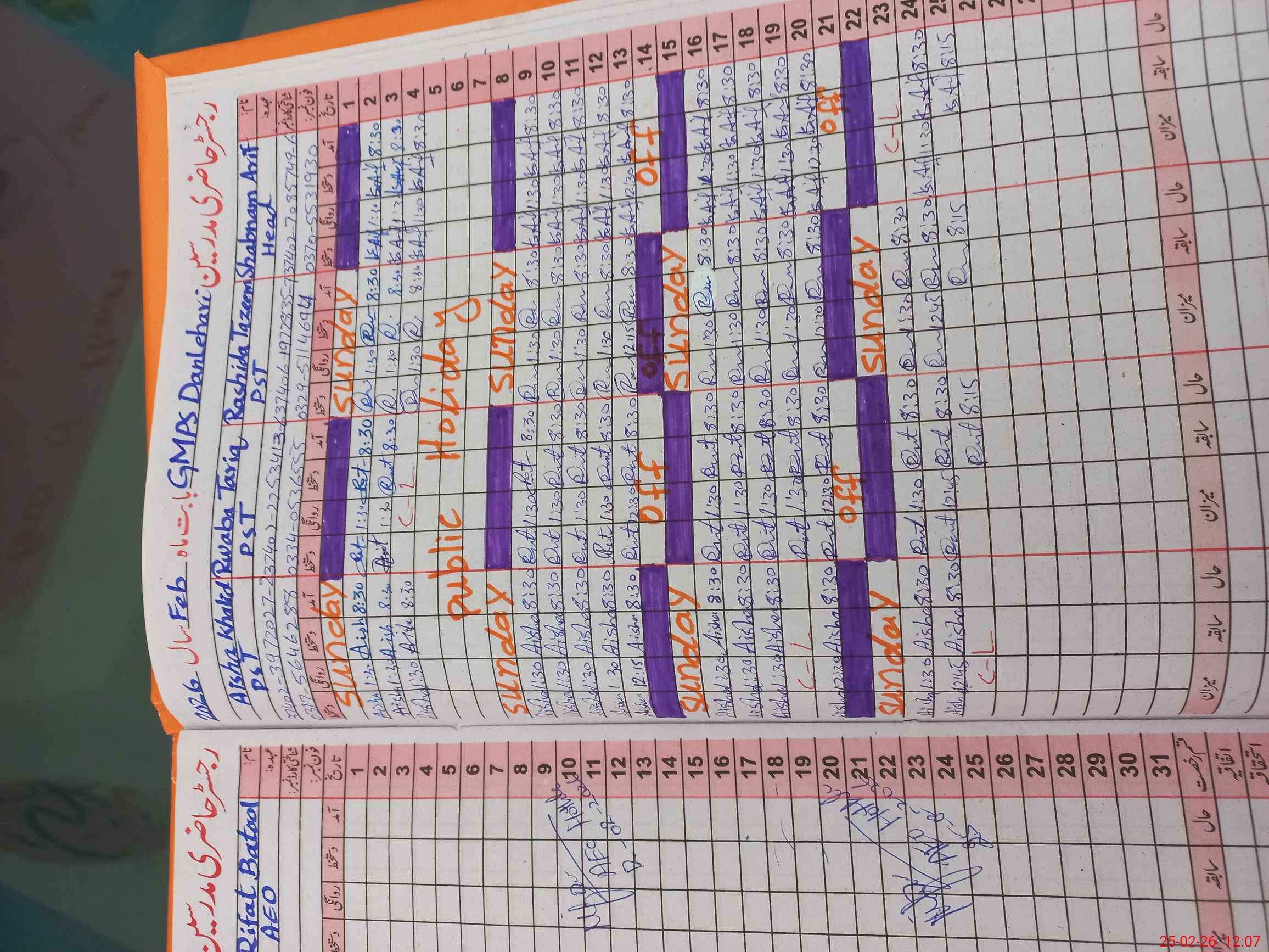 | CNIC | Full Name | Designation | R/C | Absence During Last Calender Month |