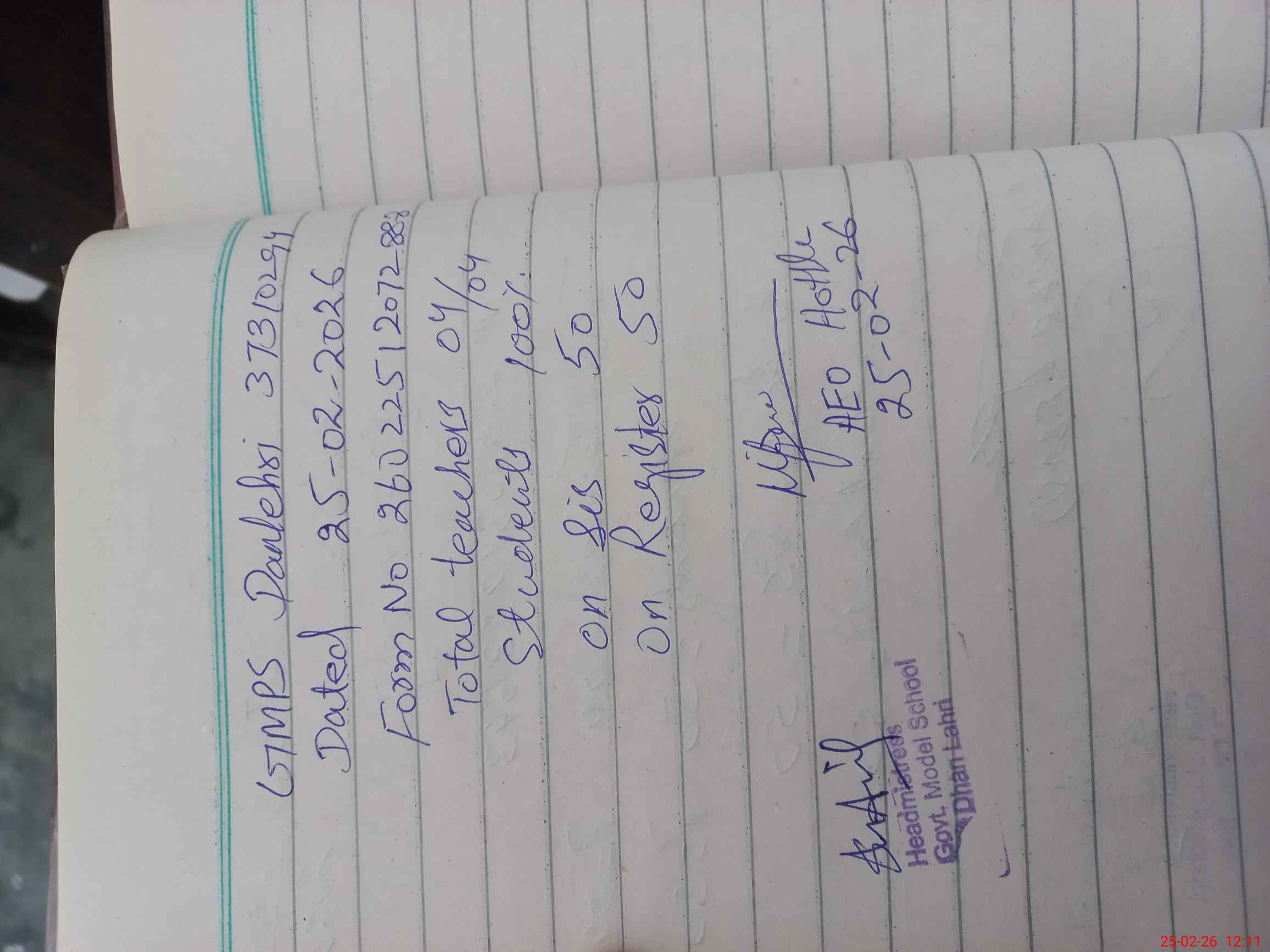 | Certified that this School was Inspected by the Undersigned MEA/DMO Today and the Information Stated Above is as Per Record. | |||||