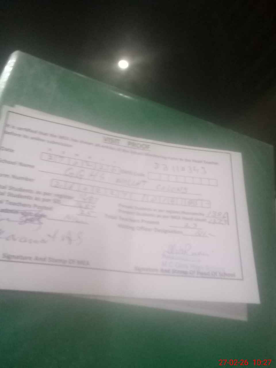 | Attendance Register | Head Teacher | MEA with School | Visit Proof |