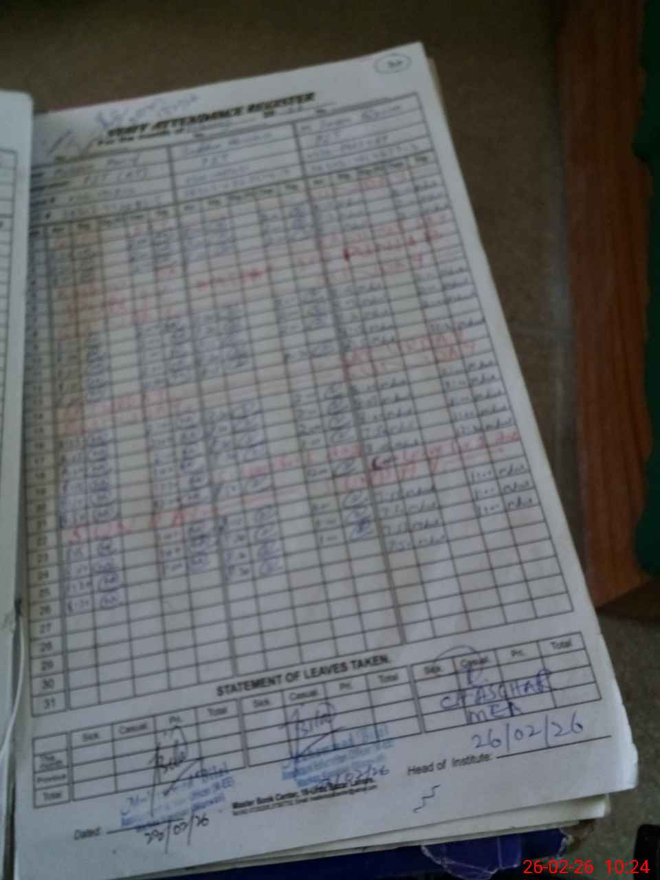 | Leave | Duty | Absent | Maternity | Medical | Ex- Pak |