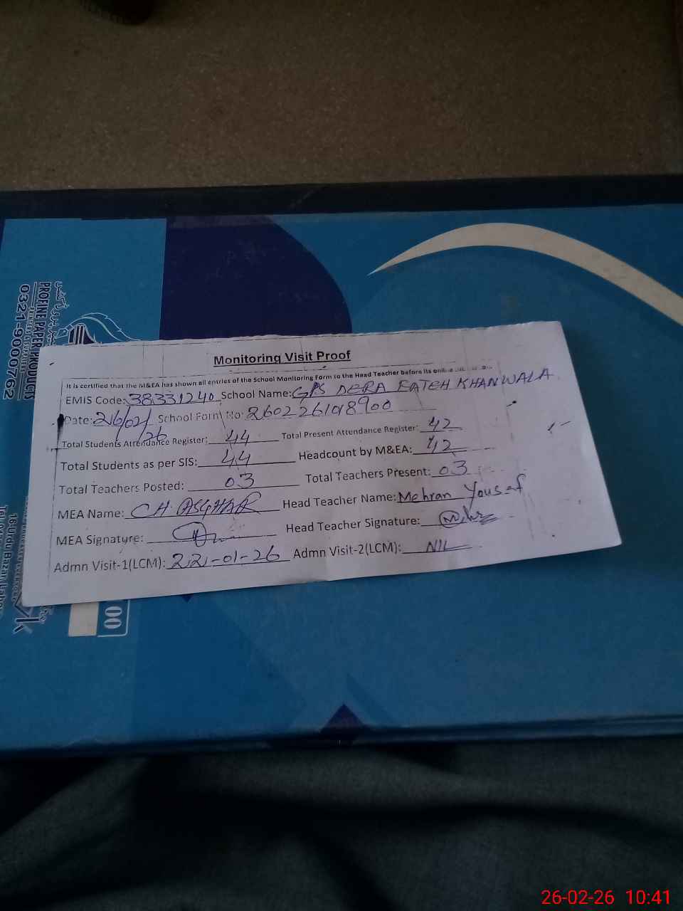 | EMIS Code: 38331240 | Name of School: GPS DERA FATEH KHANWALA | |||