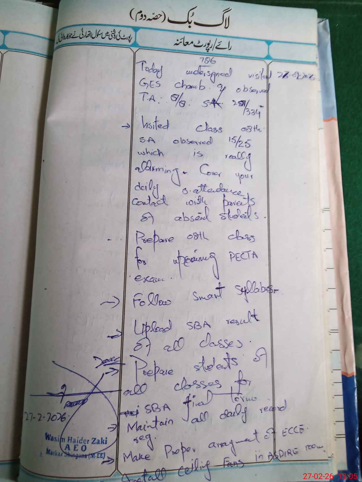 | Certified that this School was Inspected by the Undersigned MEA/DMO Today and the Information Stated Above is as Per Record. | |||||