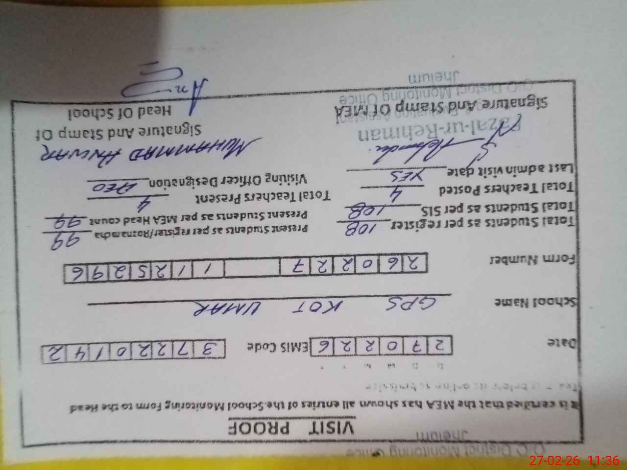 | EMIS Code: 37220142 | Name of School: GPS KOT UMER | |||