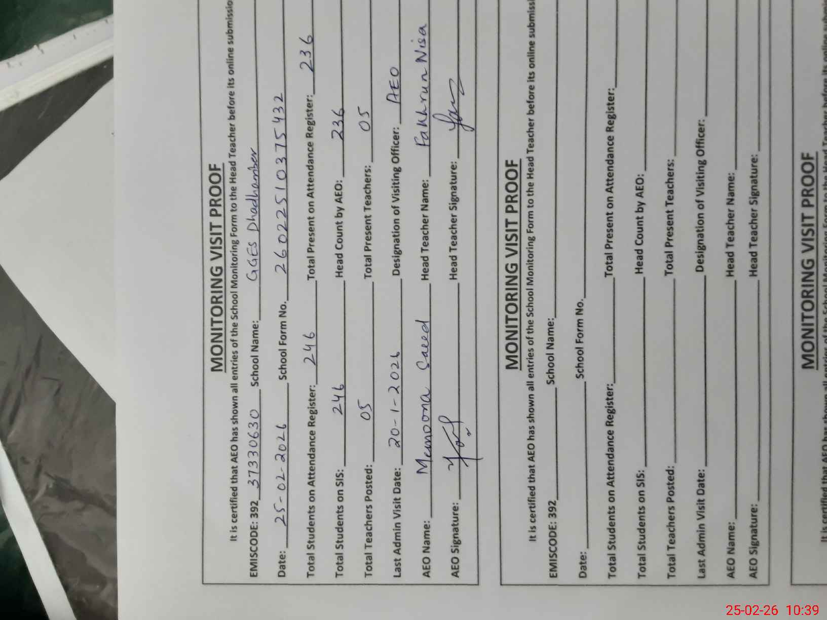 | Certified that this School was Inspected by the Undersigned MEA/DMO Today and the Information Stated Above is as Per Record. | |||||