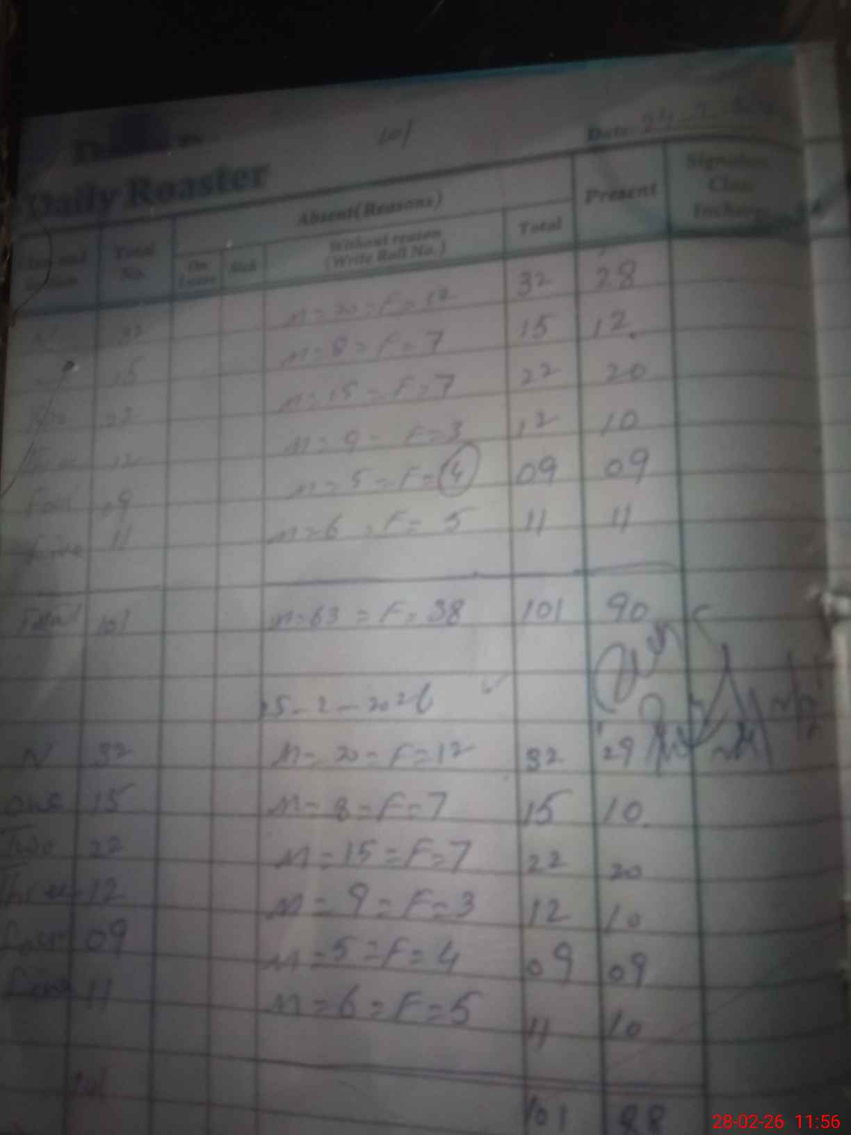 | Total Students Present | 0 | 0 | 28 | 12 | 20 | 10 | 9 | 11 | 90 | |||||||