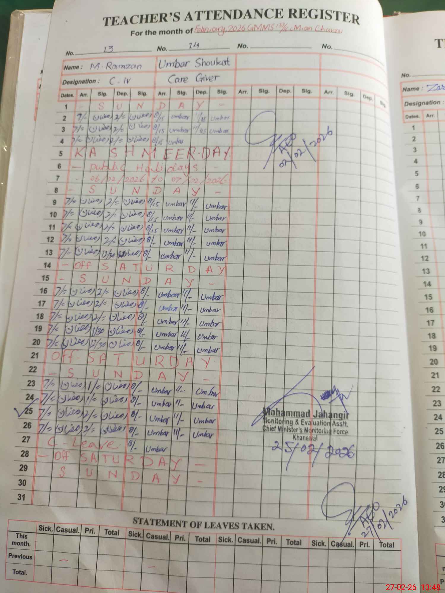 | Monitoring Date: 27-02-2026 | Start Time: 27-02-2026 10:12 AM | End Time: 27-02-2026 10:54 AM | Name of MEA: Sh**** Hu**** | |