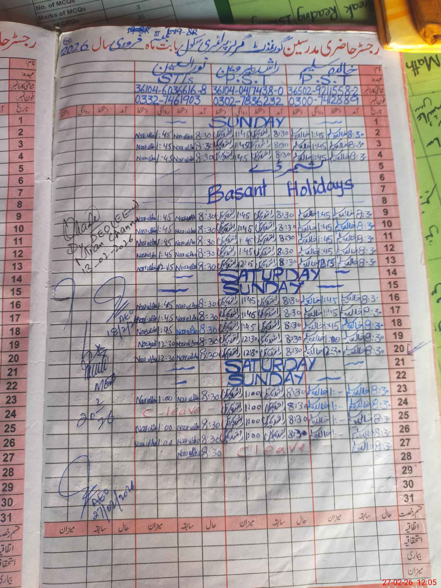 | Name: KH**** SA**** Designation: (School Headmaster's/Headmistress's) PST Phone/Cell Number: 03**** |