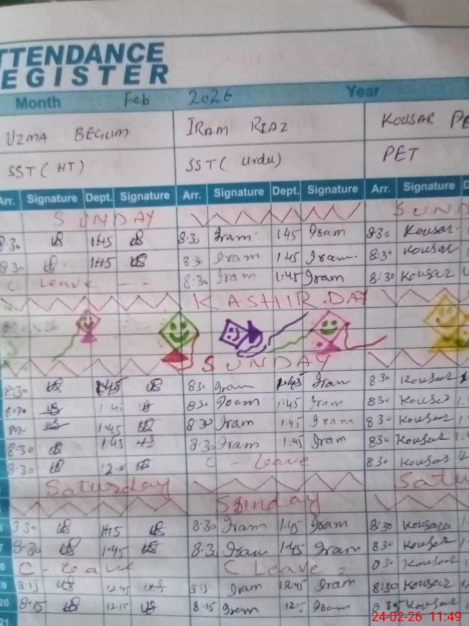 | 33**** | Su**** Na**** | PST Arts | Regular | 0 | 0 | 0 | 0 | 0 | 0 | 0 | 0 | 0 | Casual |
