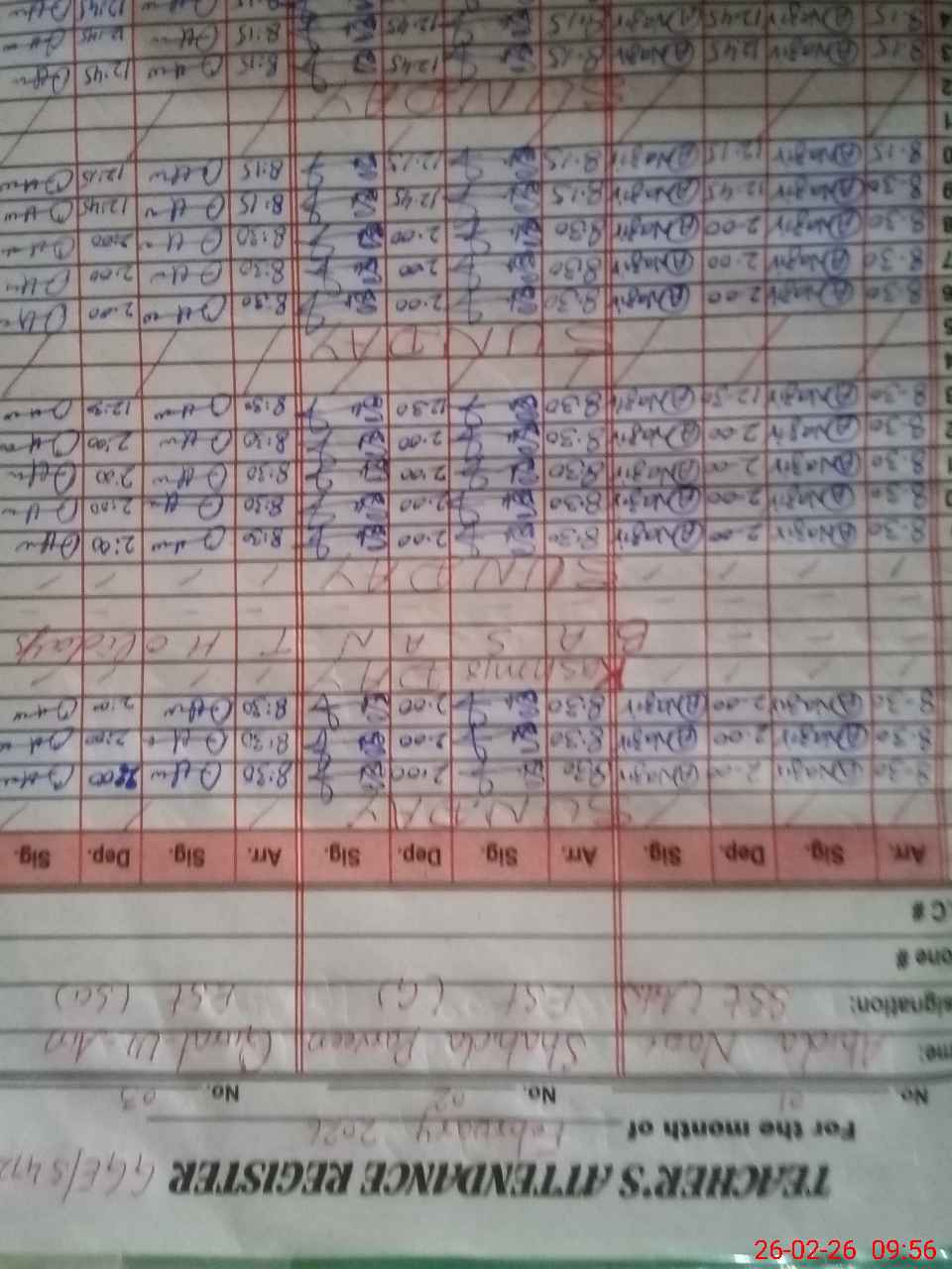 | Monitoring Date: 26-02-2026 | Start Time: 26-02-2026 09:00 AM | End Time: 26-02-2026 09:56 AM | Name of MEA: MU**** RA**** HU**** | |