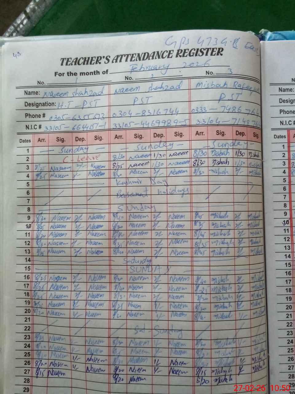 | Name: AB**** MA**** Designation: (School Headmaster's/Headmistress's) PST Phone/Cell Number: 03**** |