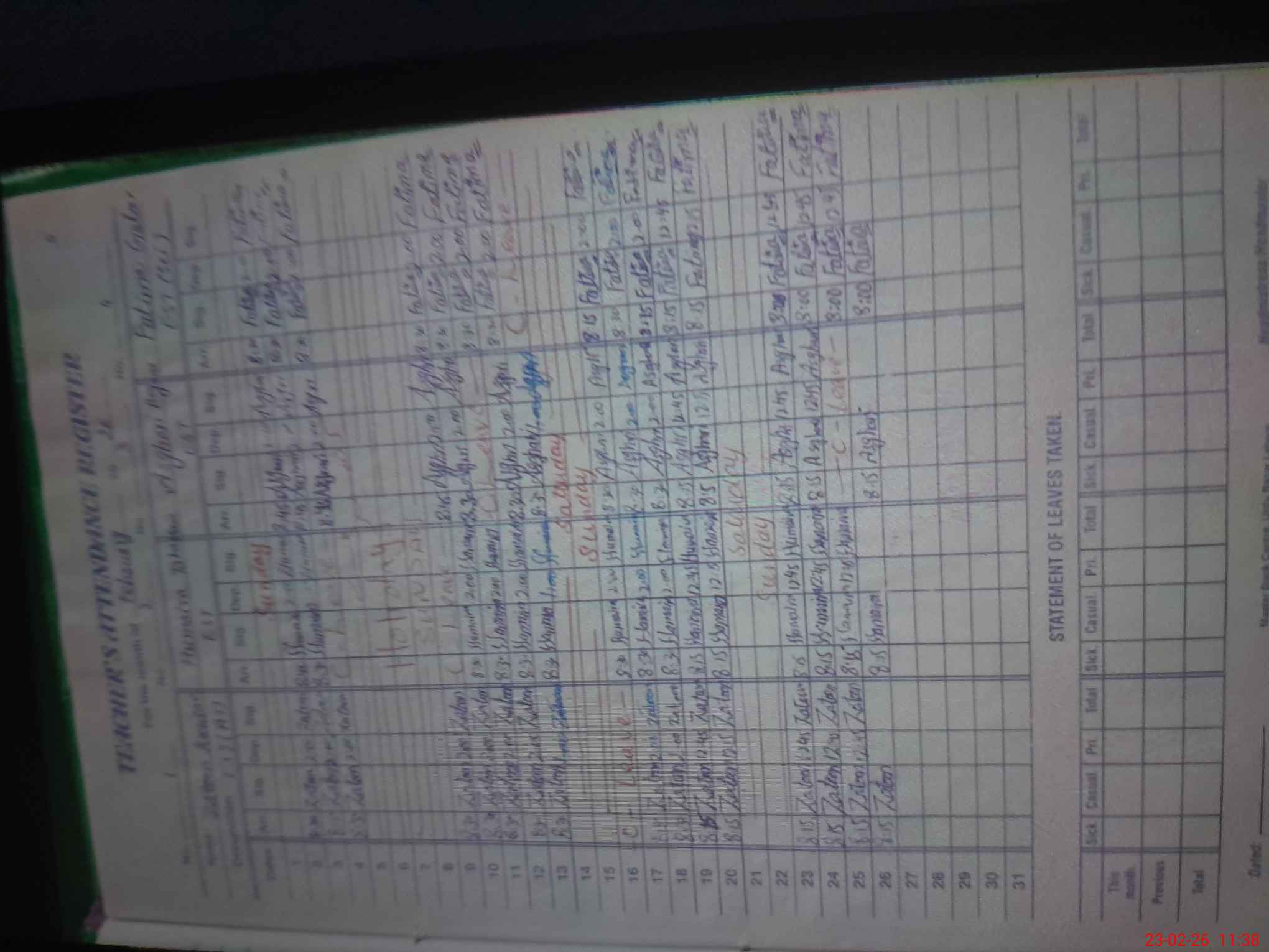 | Leave | Duty | Absent | Maternity | Medical | Ex- Pak |