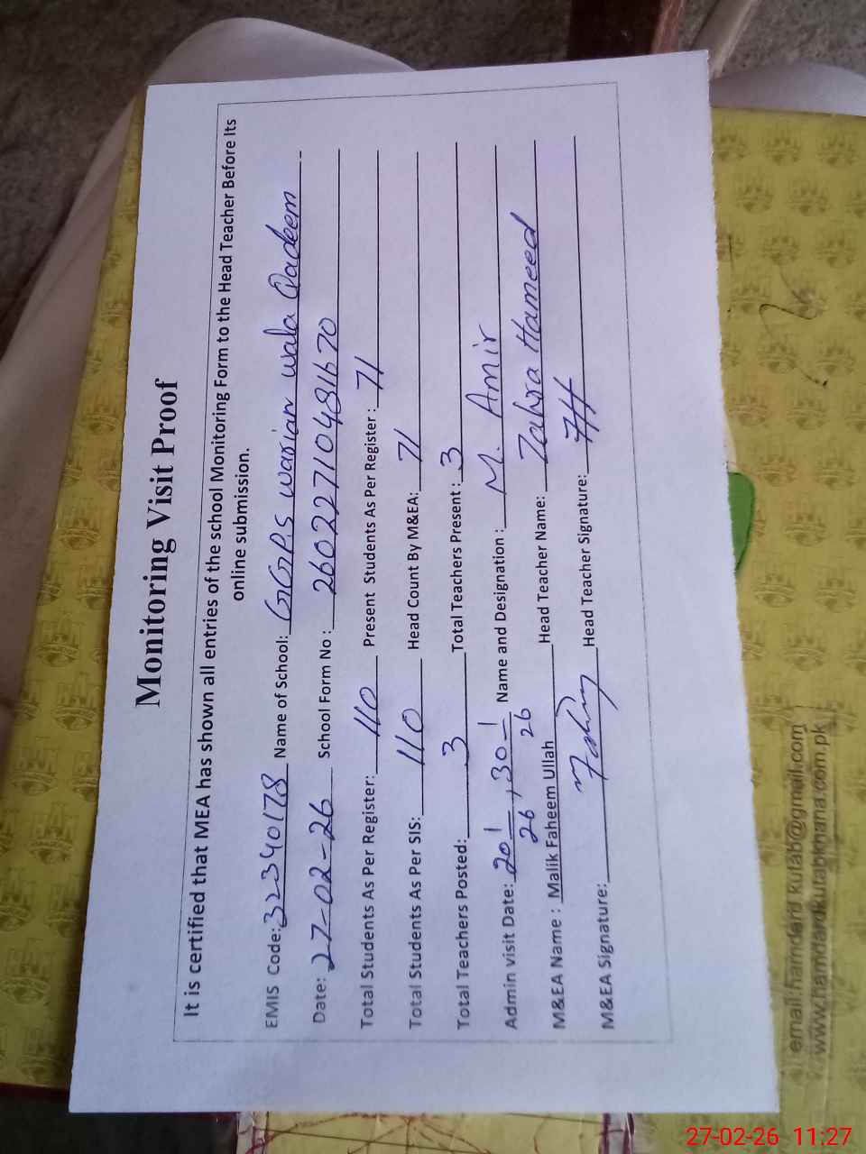 | EMIS Code: 32340178 | Name of School: GGPS WARIAN WALA QADEEM | |||