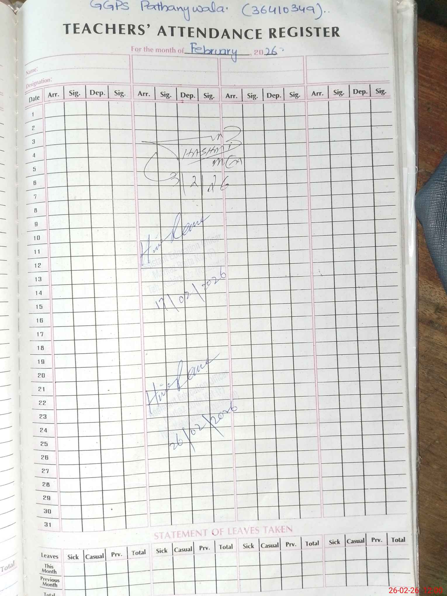 | Name: TA**** NO**** GI**** Designation: (School Headmaster's/Headmistress's) PST Phone/Cell Number: 03**** |