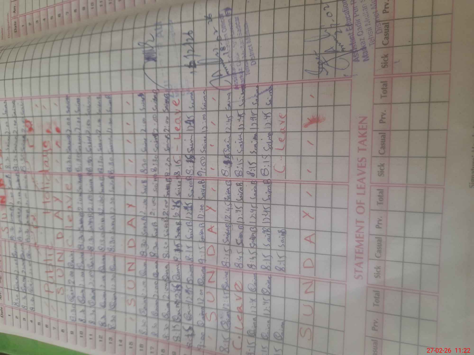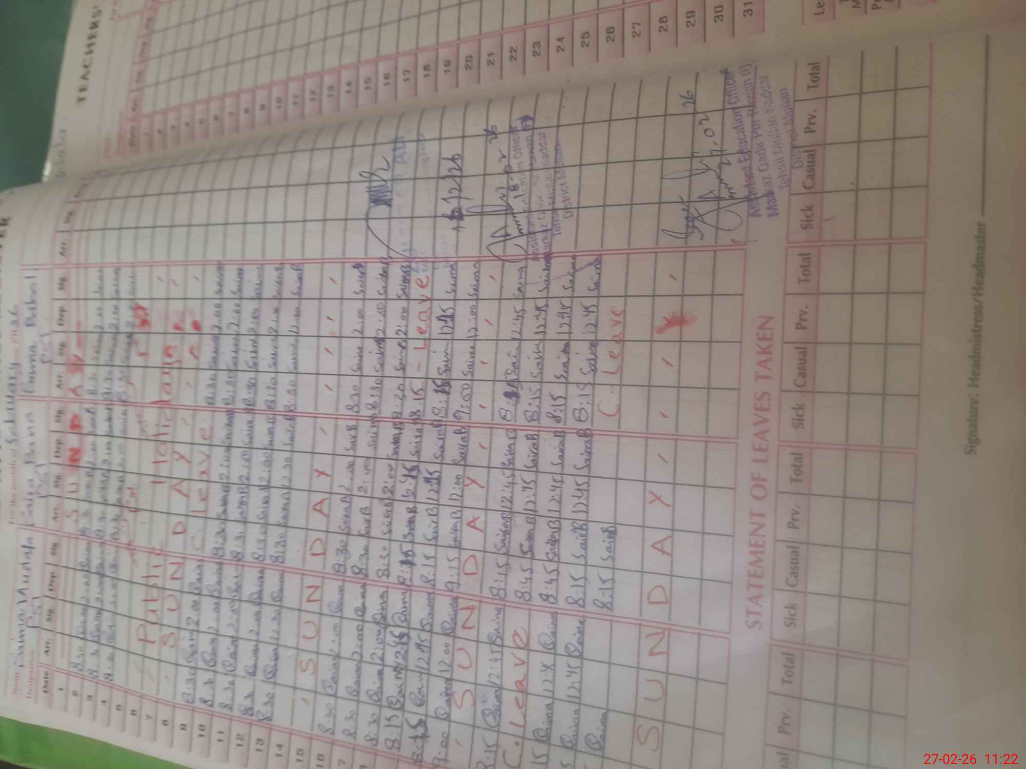| 36**** | Sa**** Ba**** | PST Science/Maths | Regular | 0 | 0 | 0 | 0 | 0 | 0 | 0 | 0 | 0 | Casual |