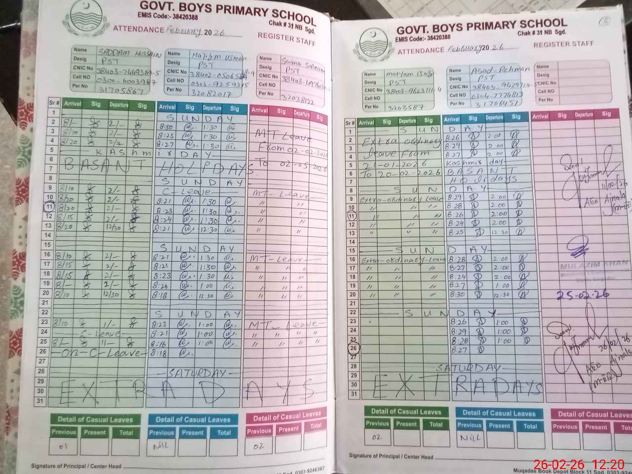 | 38**** | Sa**** Hu**** | PST Science/Maths | Regular | 0 | 0 | 0 | 0 | 0 | 0 | 0 | 0 | 0 | Casual |