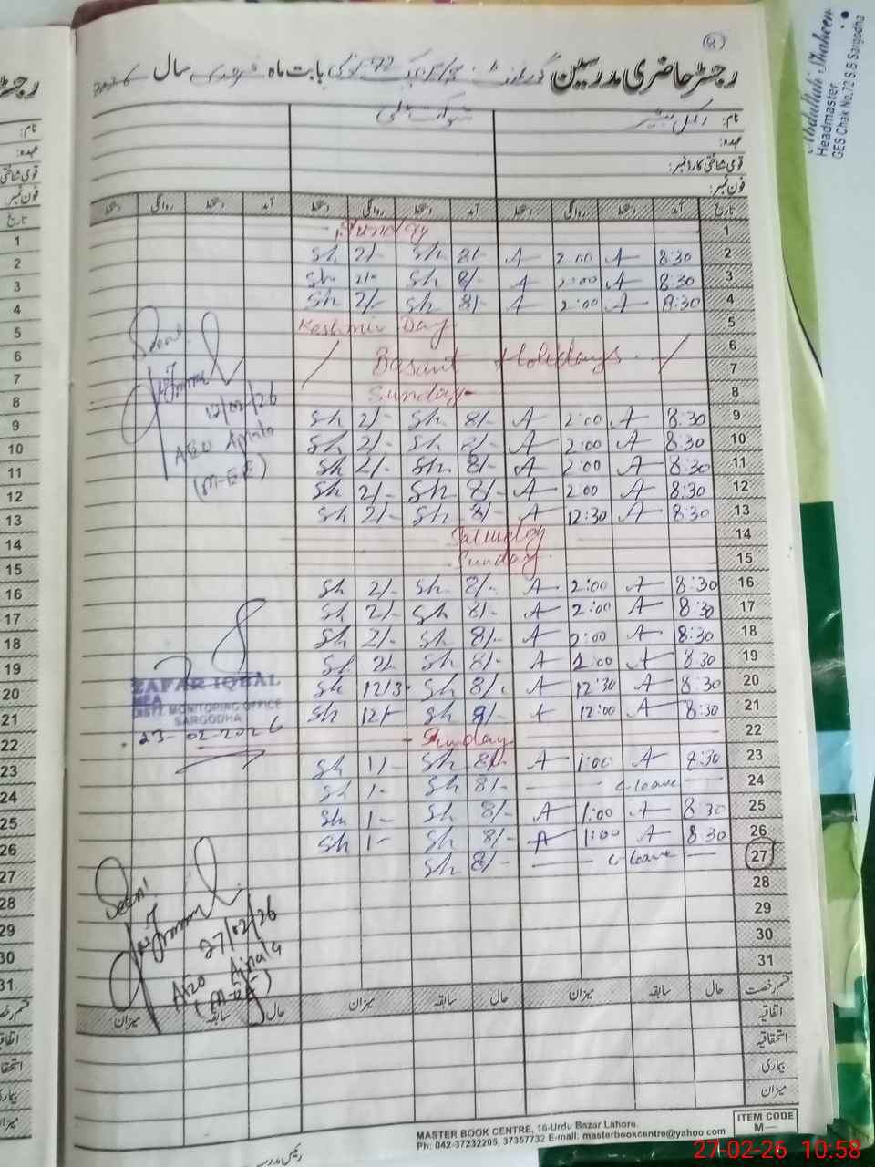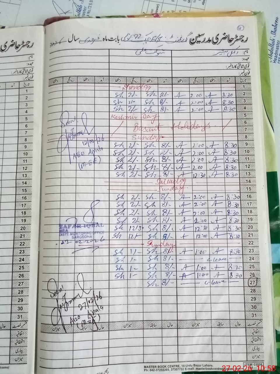 | Monitoring Date: 27-02-2026 | Start Time: 27-02-2026 10:32 AM | End Time: 27-02-2026 10:59 AM | Name of MEA: MU**** FA**** AH**** | |
