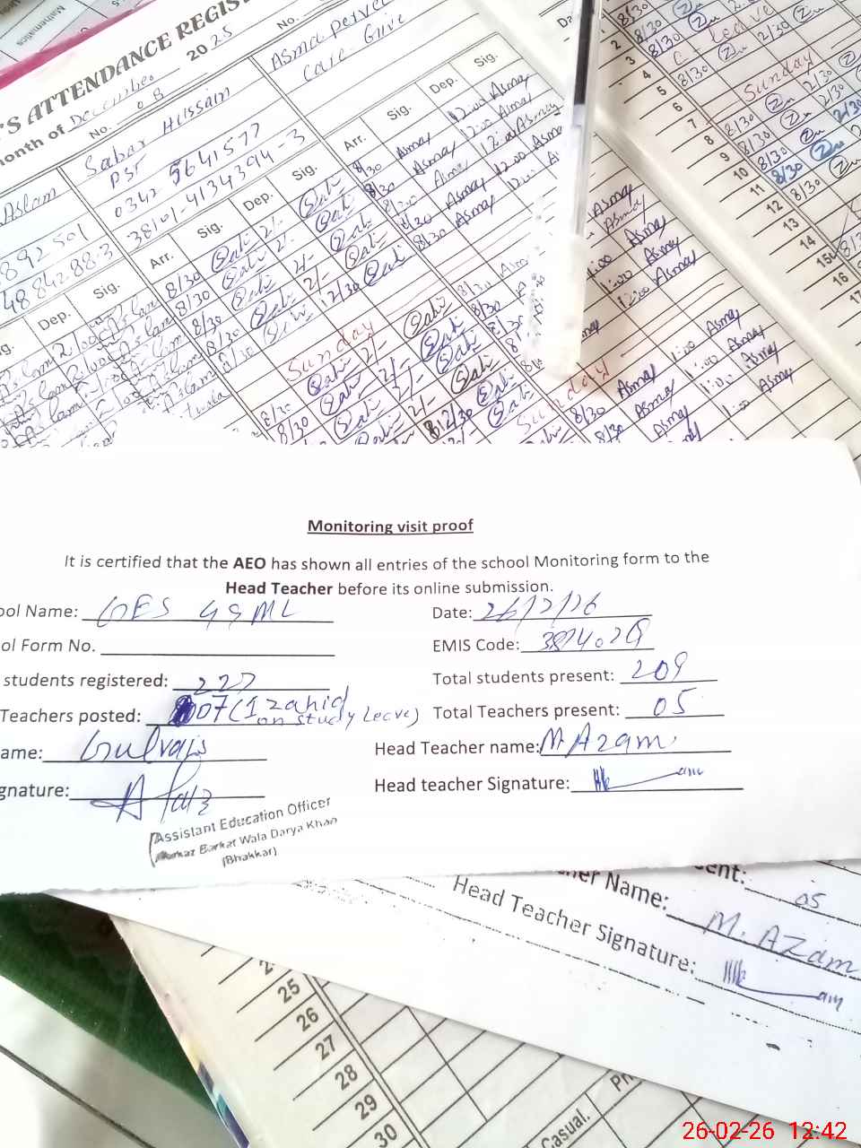 | Attendance Register | Head Teacher | MEA with School | Visit Proof |