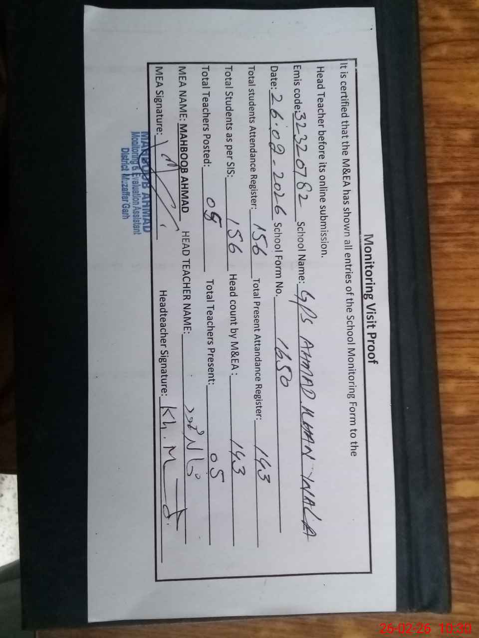| EMIS Code: 32320782 | Name of School: GPS AHMAD KHAN WALA | |||