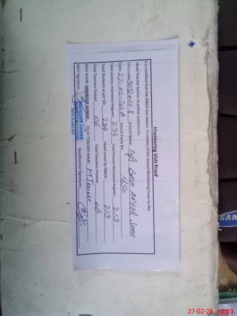 | EMIS Code: 32320228 | Name of School: GPS BASTI AMEER SHAH | |||