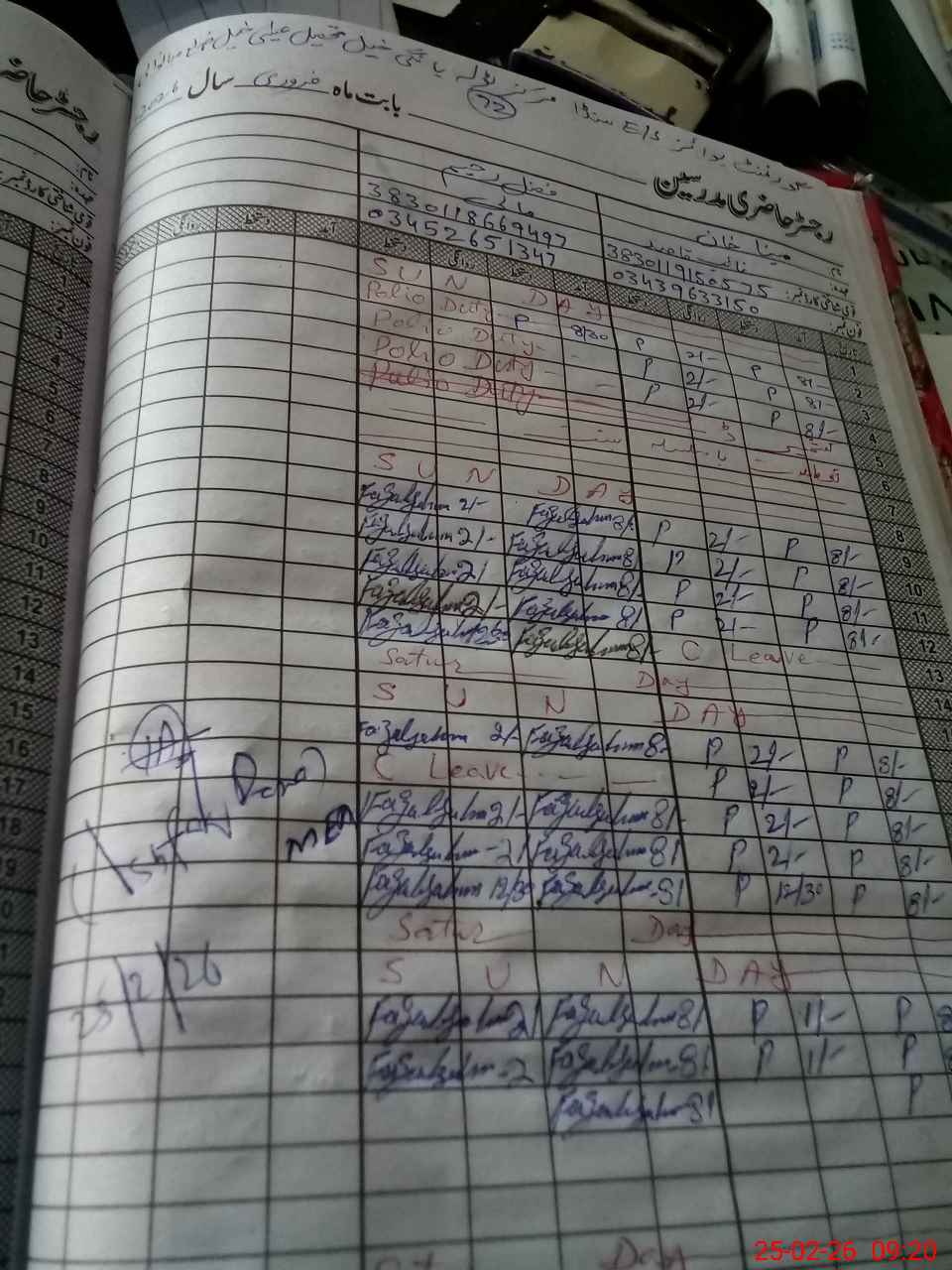 | CNIC | Full Name | Designation | R/C | Absence During Last Calender Month |