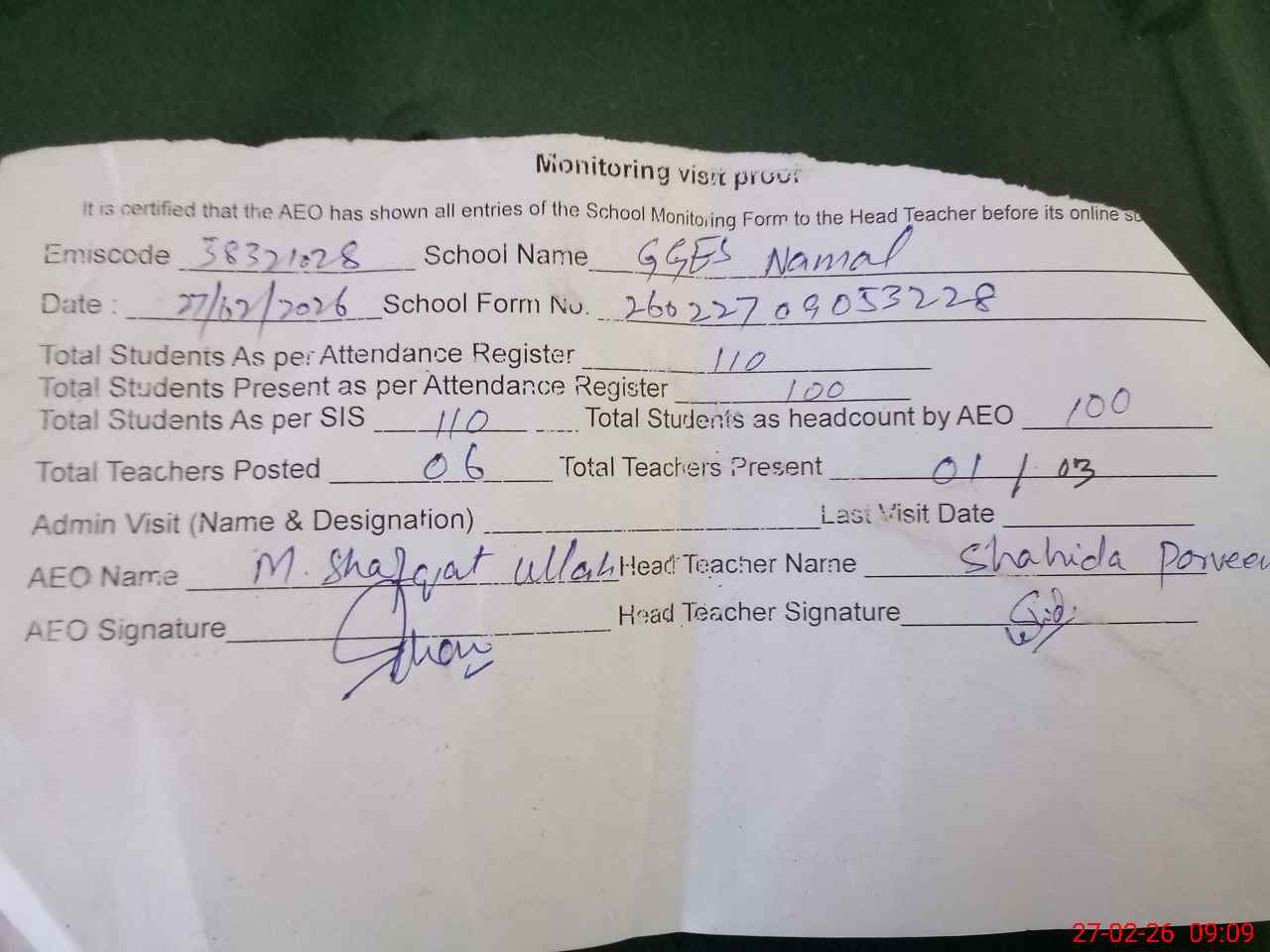 | EMIS Code: 38321028 | Name of School: GGES NAMAL CHAKRALA MIANWALI | |||