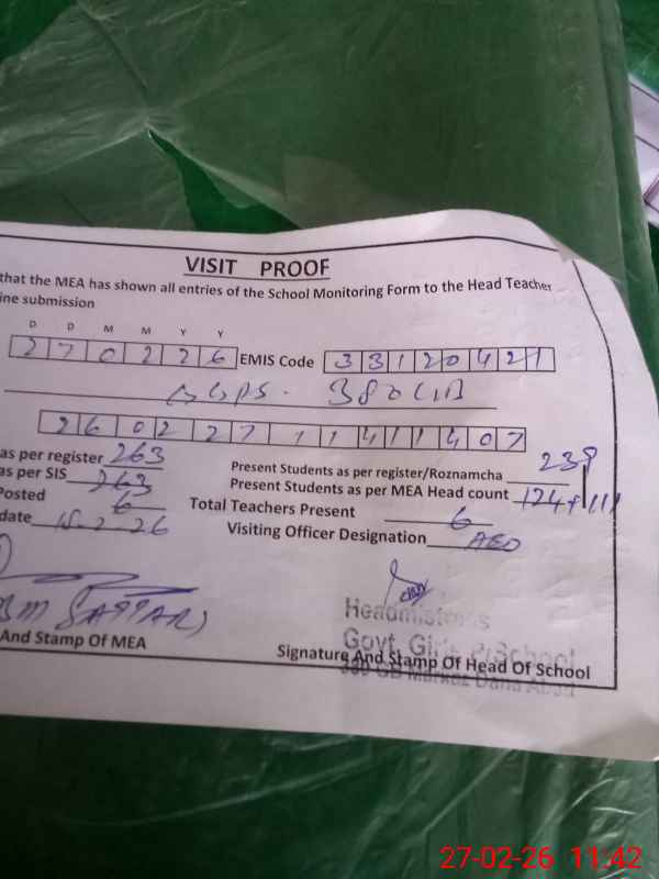 | Attendance Register | Head Teacher | MEA with School | Visit Proof |