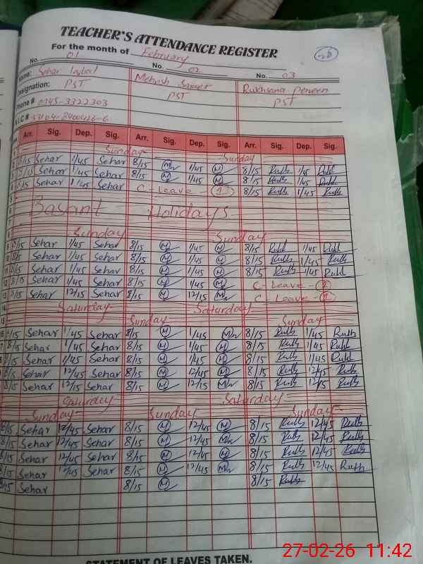 | CNIC | Full Name | Designation | R/C | Absence During Last Calender Month |