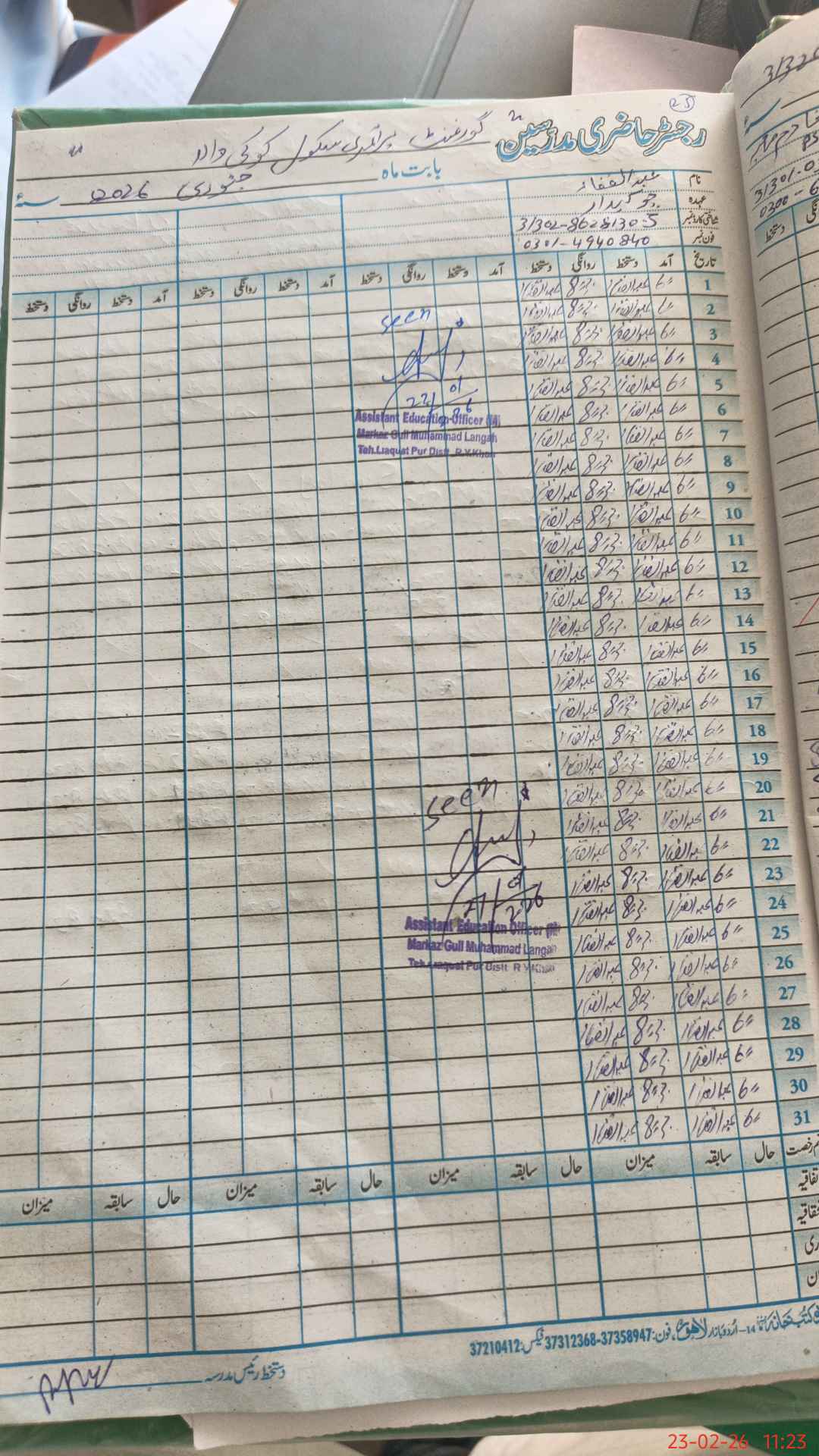 | Name: MU**** RA**** Designation: (School Headmaster's/Headmistress's) PST/PTC/JV Phone/Cell Number: 03**** |