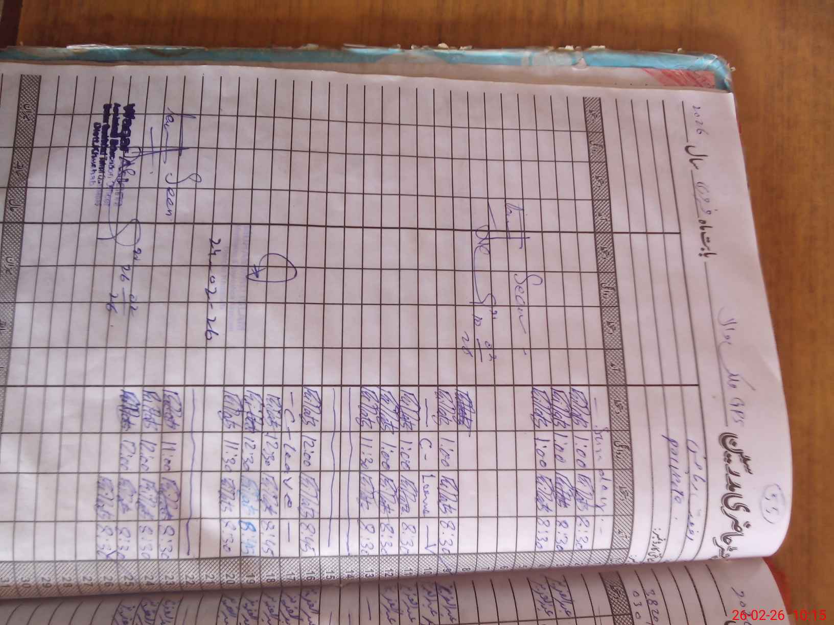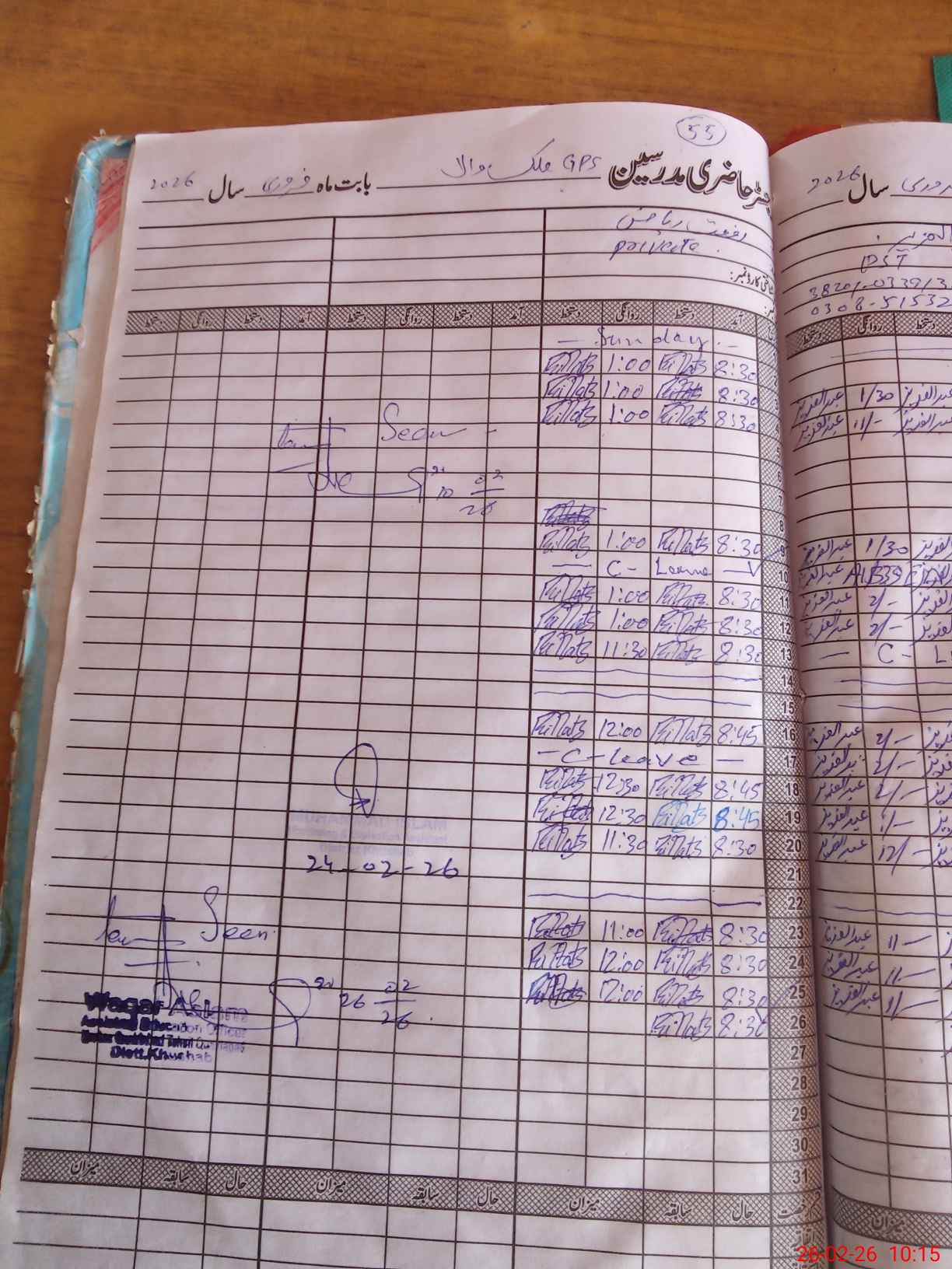 | CNIC | Full Name | Designation | R/C | Absence During Last Calender Month |