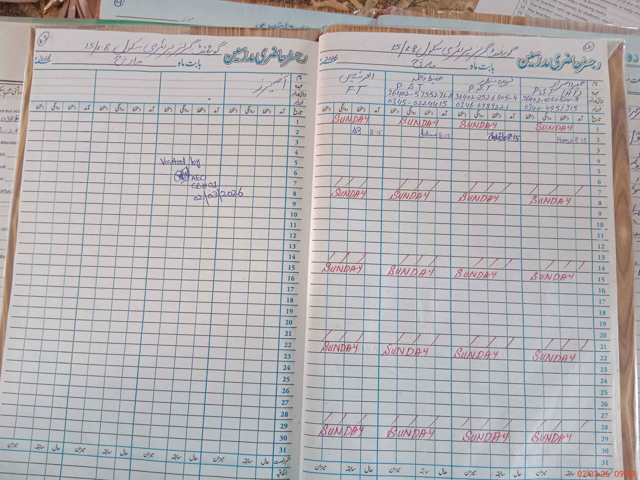 | Name: HU**** IS**** Designation: (School Headmaster's/Headmistress's) PST Phone/Cell Number: 03**** |