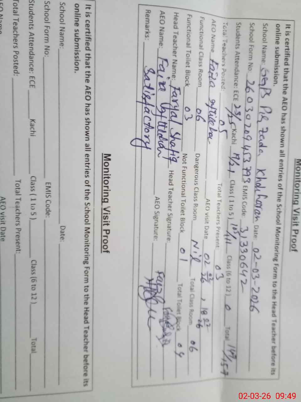 | EMIS Code: 31330642 | Name of School: GGPS BASTI PERZADA KHOKHRAN | |||
