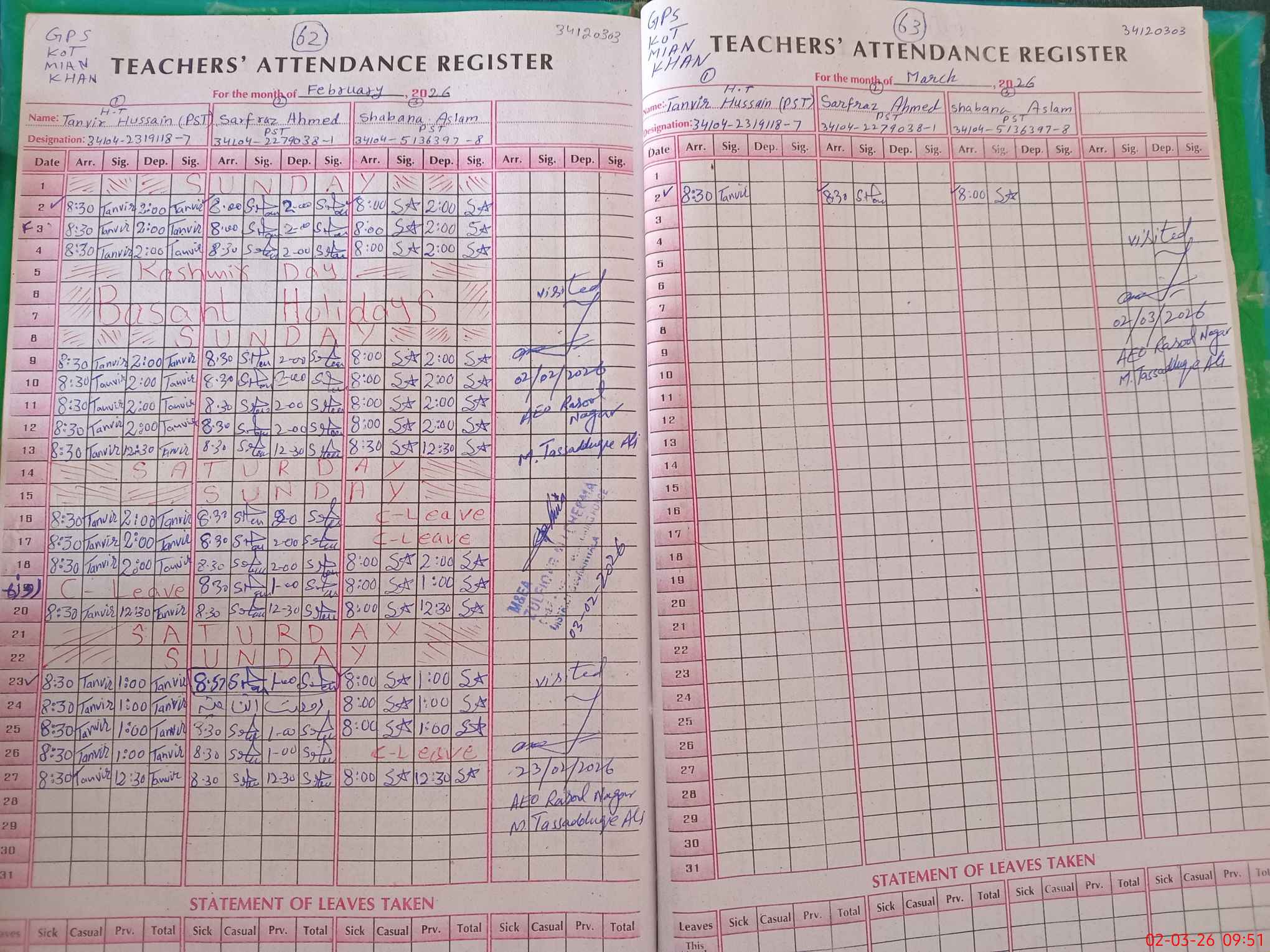 | EMIS Code: 34120303 | Name of School: GPS KOT MIAN KHAN | |||