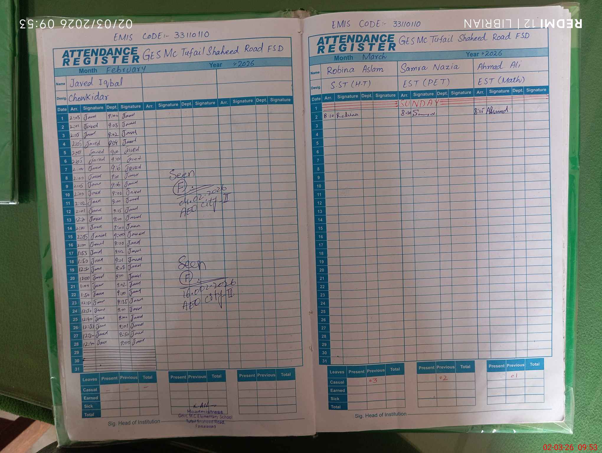 | EMIS Code: 33110110 | Name of School: GES MC TUFAIL SHAHEED ROAD FSD | |||
