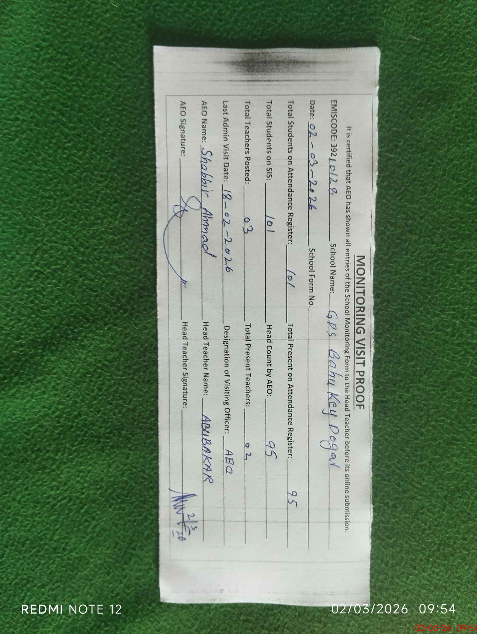 | EMIS Code: 39210128 | Name of School: GPS BAHU KEY DOGAR | |||
