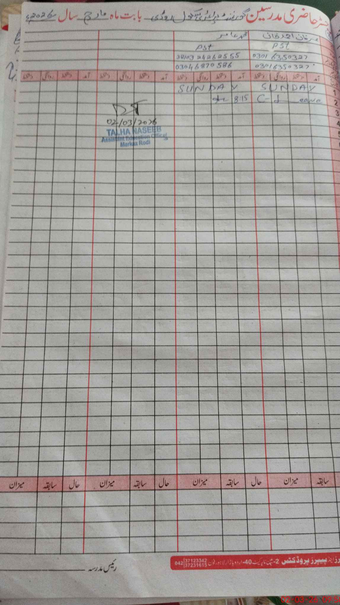 | Name: Mu**** Ha**** Designation: (School Headmaster's/Headmistress's) PST Phone/Cell Number: 03**** |