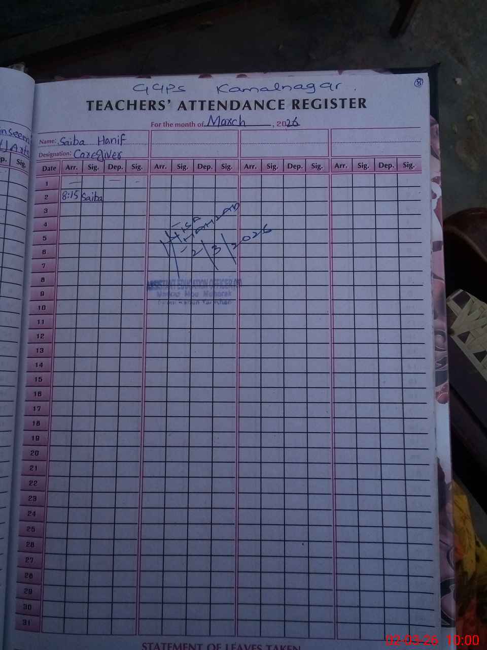 | Attendance Register | Head Teacher | MEA with School | Visit Proof |