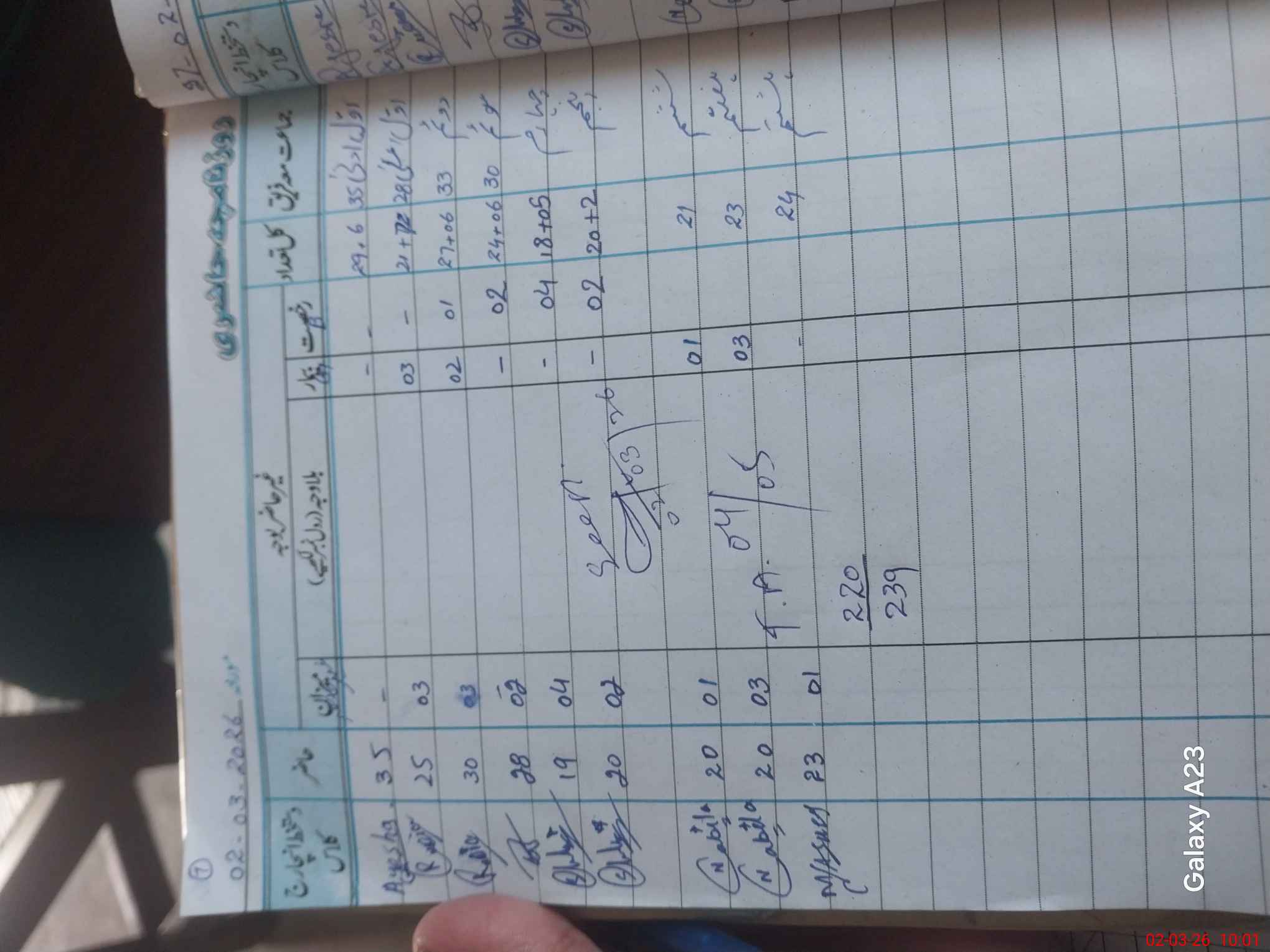 | Total Students Present | 0 | 0 | 25 | 30 | 28 | 19 | 20 | 20 | 20 | 23 | 220 | |||||