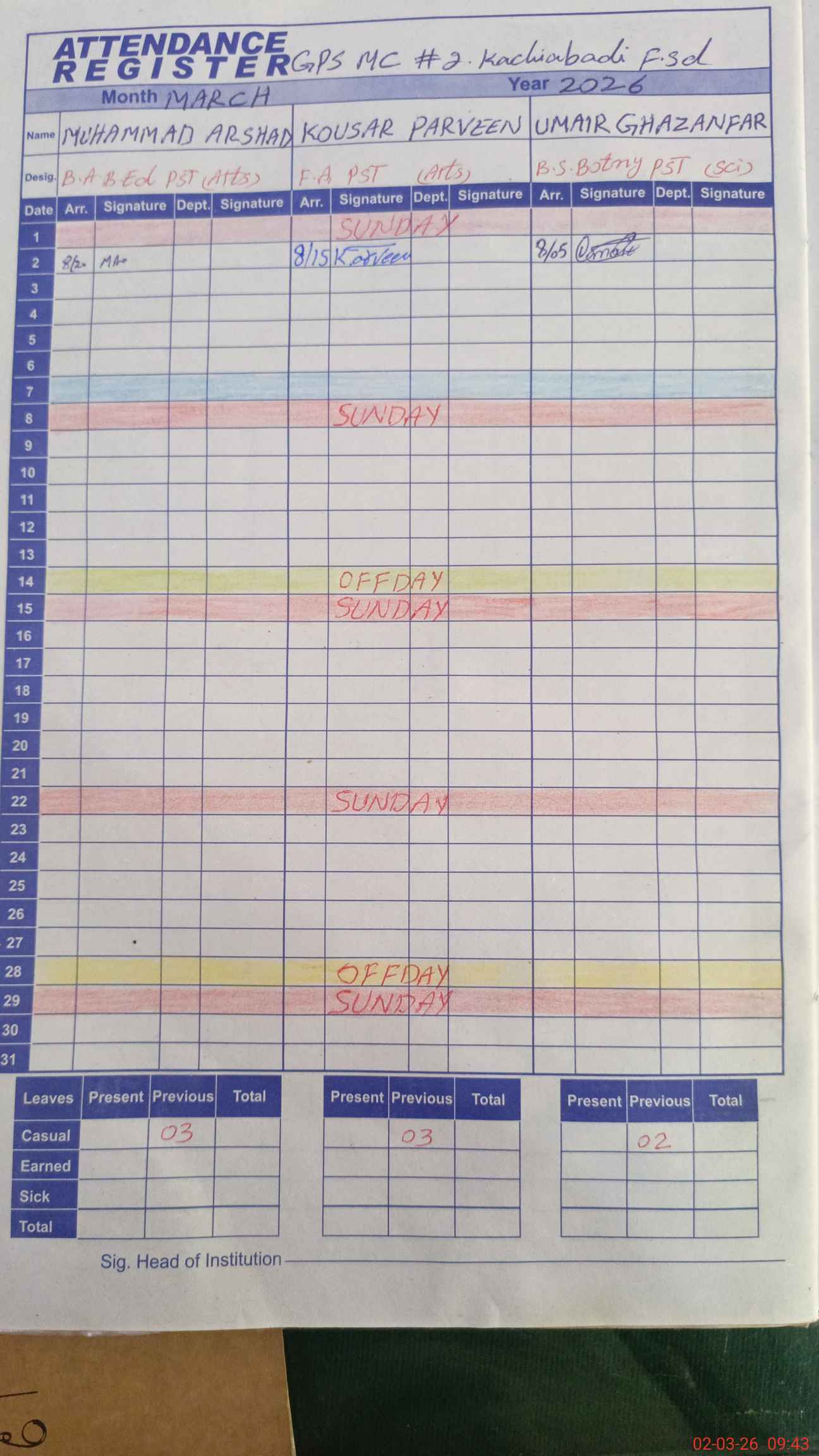 | EMIS Code: 33110095 | Name of School: GPS MC NO.2 KACHI ABADI FAISALABAD | |||