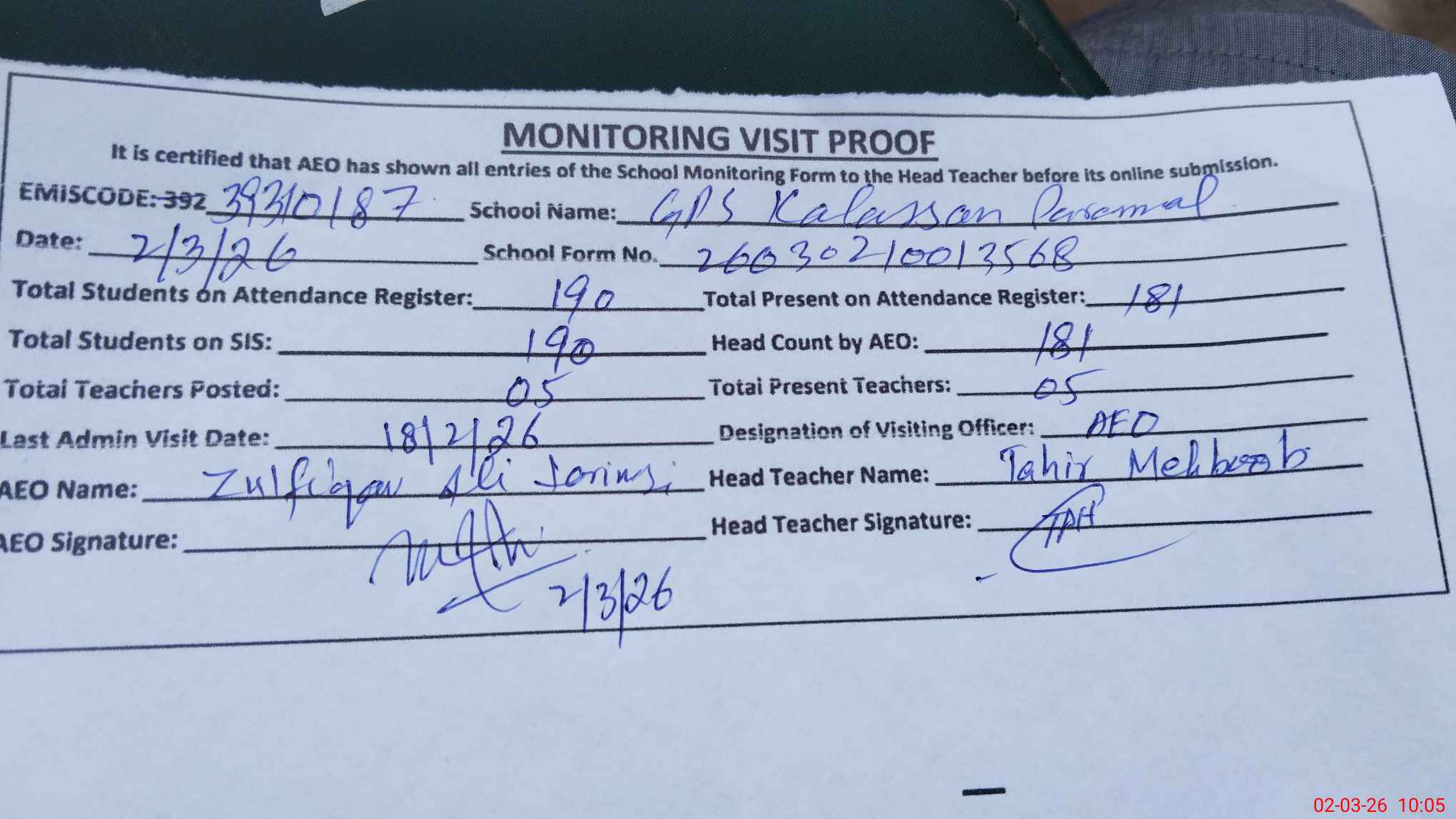 | EMIS Code: 39310187 | Name of School: GPS KALASSAN PARAMAL | |||