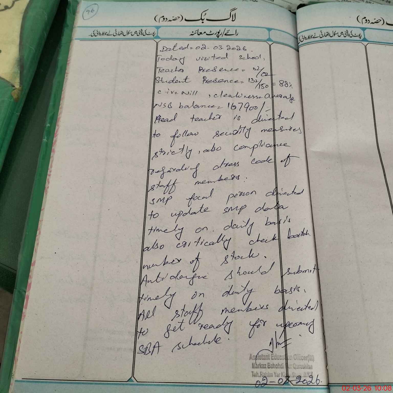 | Certified that this School was Inspected by the Undersigned MEA/DMO Today and the Information Stated Above is as Per Record. | |||||