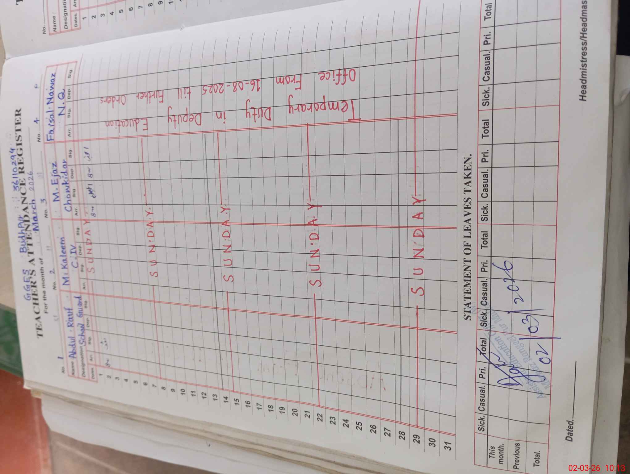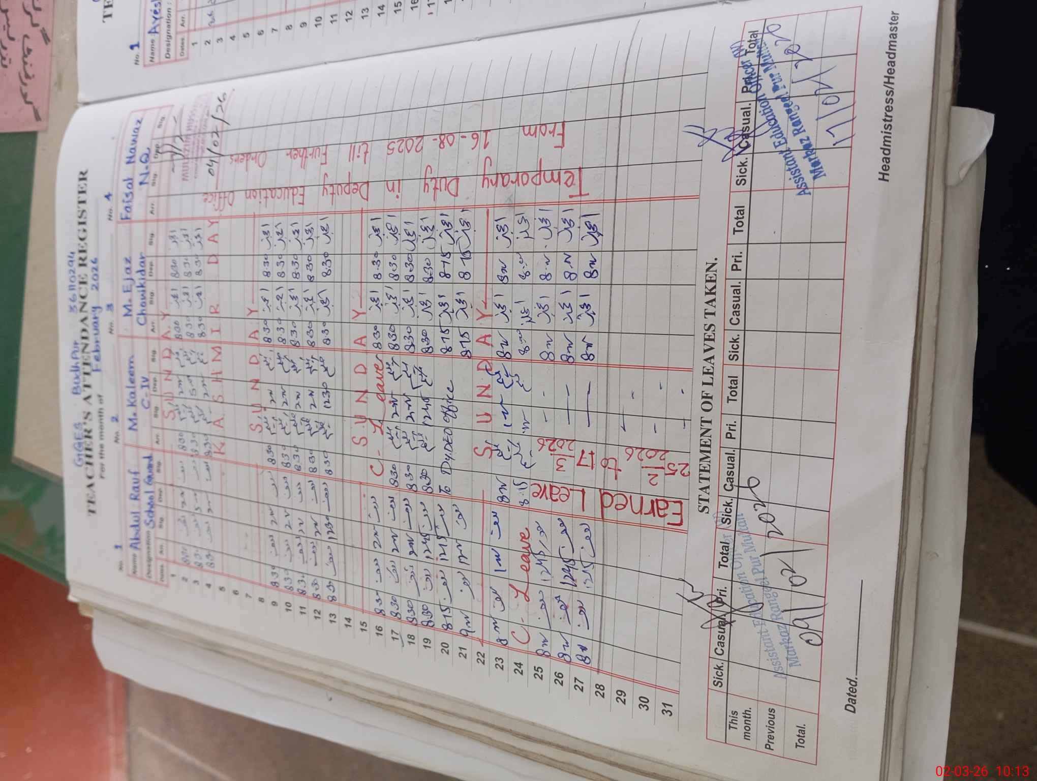 | 36**** | Sa**** Na**** | PST Arts | Regular | 0 | 0 | 0 | 0 | 0 | 0 | 0 | 0 | 0 | Absent (Un-Authorized) |
