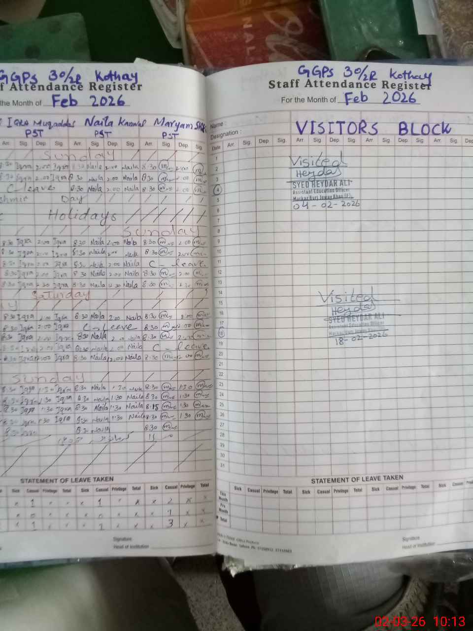 | Leave | Duty | Absent | Maternity | Medical | Ex- Pak |