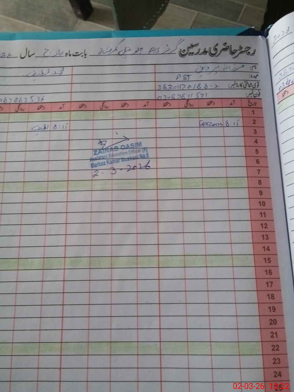 | Name: Sa**** Ma**** Designation: (School Headmaster's/Headmistress's) PST Phone/Cell Number: 03**** |