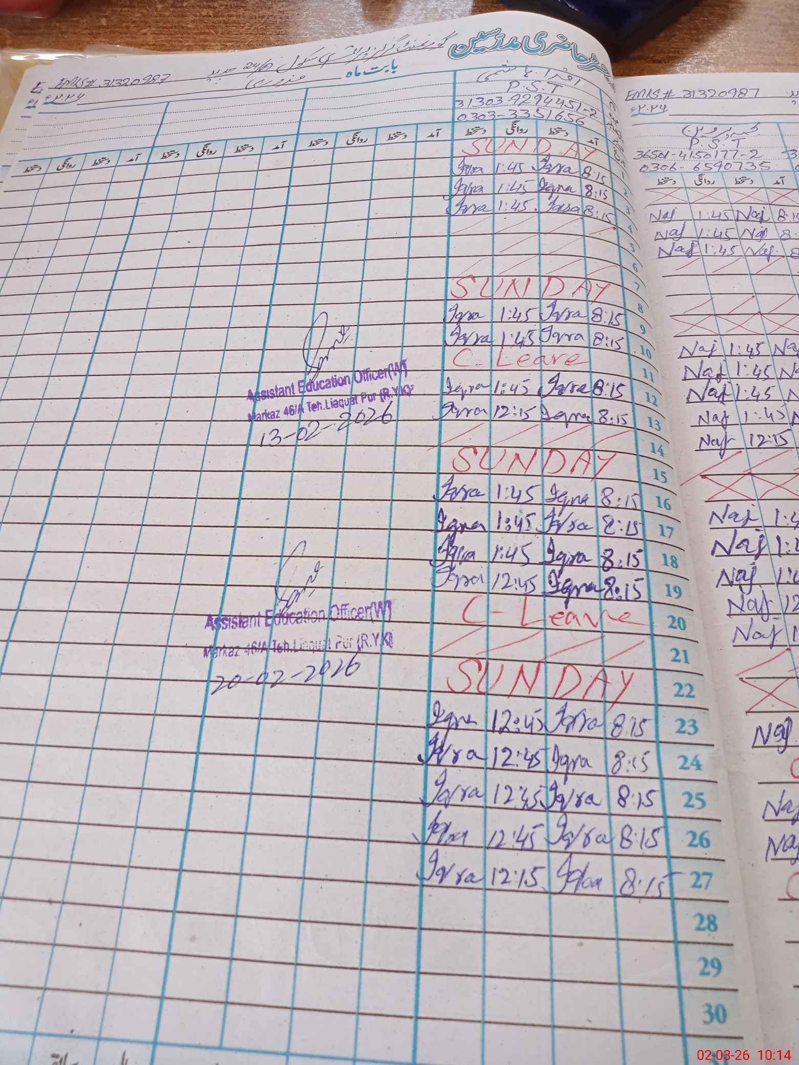| Name: NA**** PA**** Designation: (School Headmaster's/Headmistress's) PST Phone/Cell Number: 03**** |