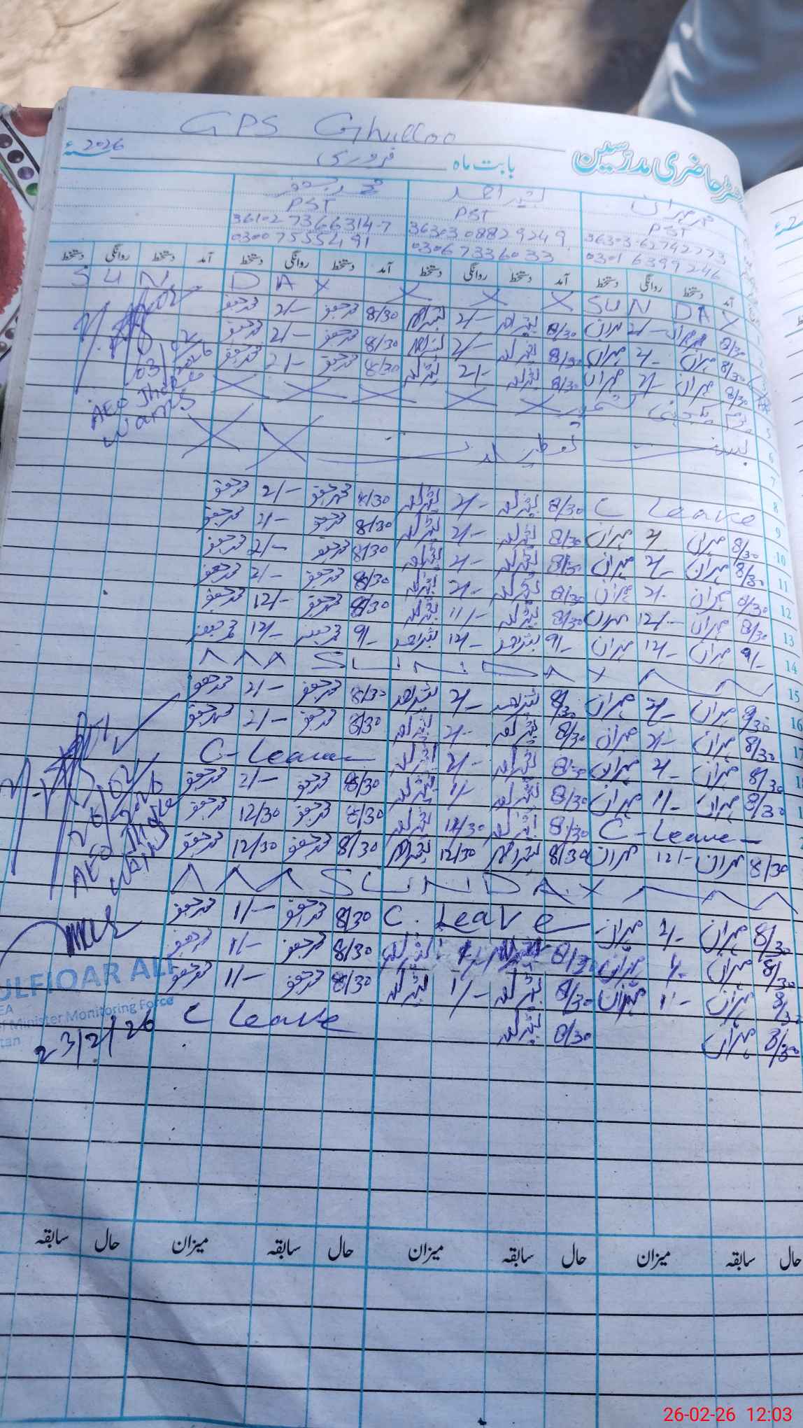 | CNIC | Full Name | Designation | R/C | Absence During Last Calender Month |