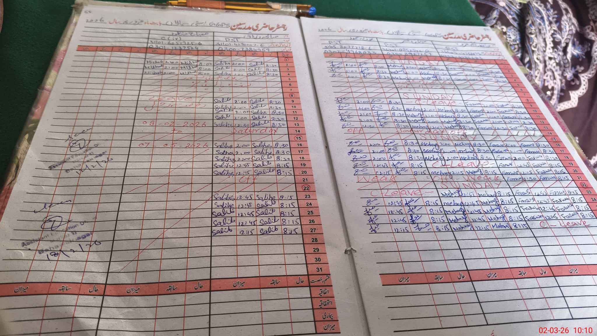 | Leave | Duty | Absent | Maternity | Medical | Ex- Pak |