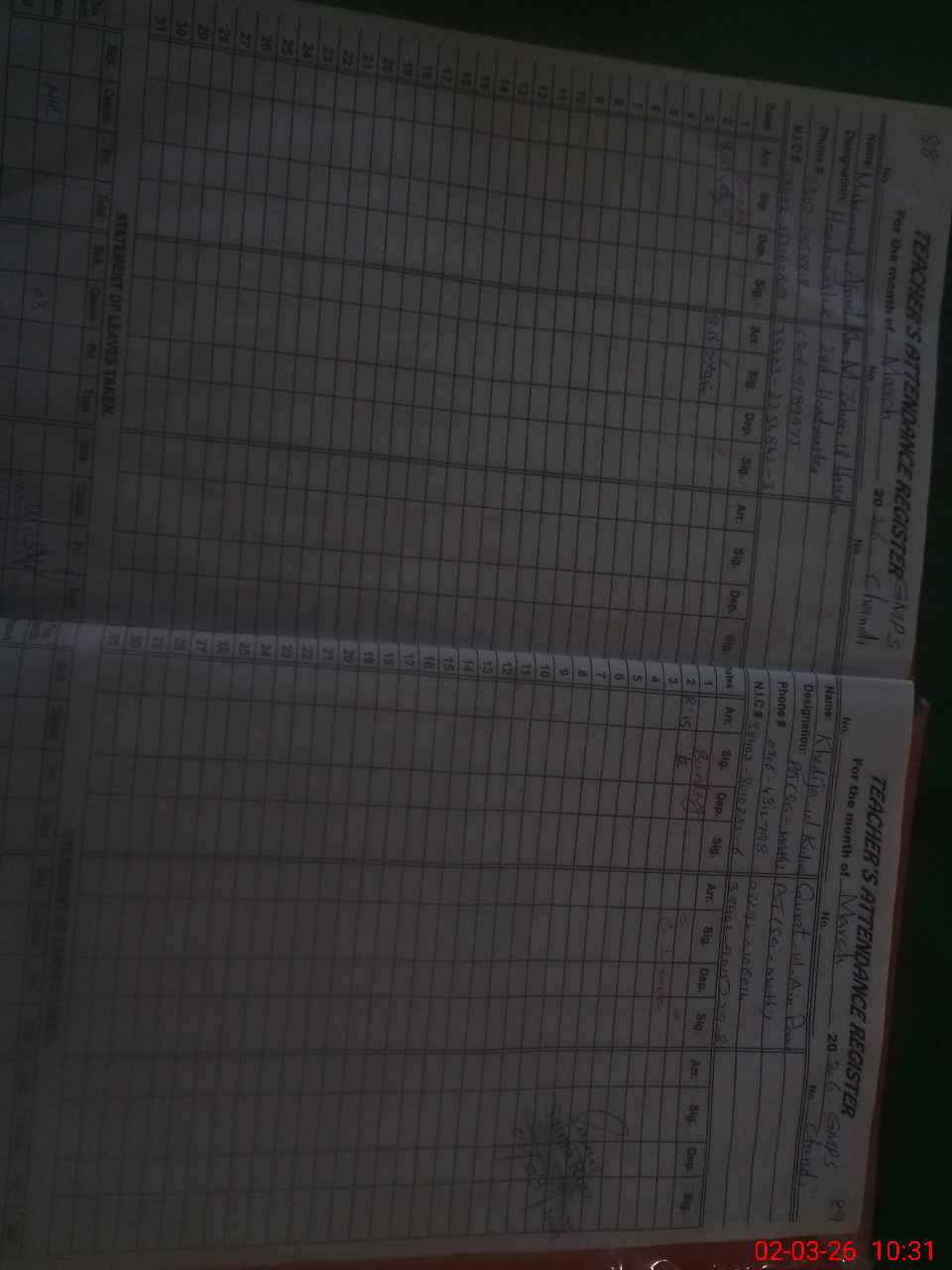 | Name: MU**** AJ**** KH**** Designation: (School Headmaster's/Headmistress's) PTC/JV Phone/Cell Number: 03**** |
